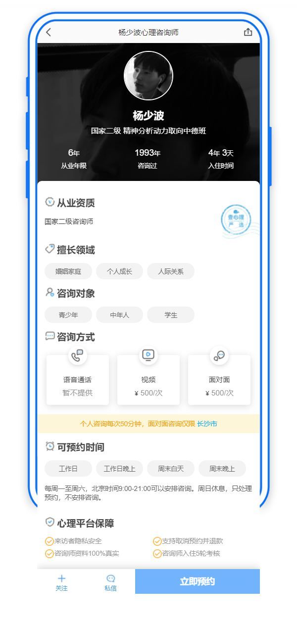 心理咨询师介绍手机预约页面模板