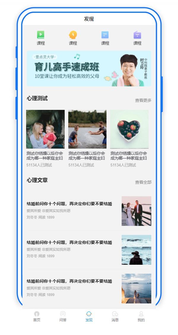 简洁心理健康发现模块手机APP模板