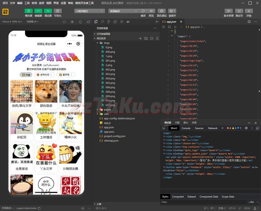 胡言乱语生成器微信小程序源码在线取名等支持流量主收益,这是一款纯前端的一款生成器小程序源码。